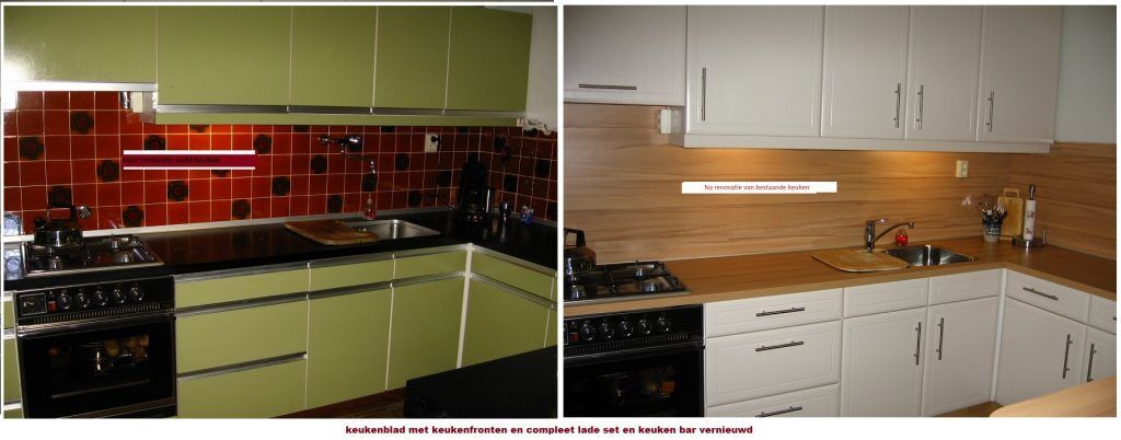 keukenrenovatie Voorbeelden van keukens die door ons zijn gerenoveerd Voor en na keuken renoveren van bestaande keukens met nieuwe keukendeurtjes, keuken panelen, plinten en werkblad met achterwand door keuken-renoveren.nl